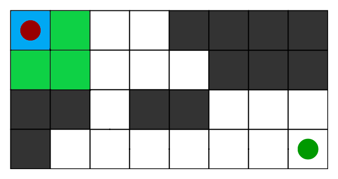 시작 노드에서부터 목표 노드까지의 최단 경로를 찾는 그래프 탐색 알고리즘.