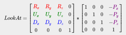์ด๋ฌํ ์นด๋ฉ๋ผ ๋ฒกํฐ๋ฅผ ์ฌ์ฉํ์ฌ ์นด๋ฉ๋ผ๋ฅผ ์์ฑํ๋ ๋ฐ ๋งค์ฐ ์ ์ฉํ LookAt ํ๋ ฌ์ ๋ง๋ค ์ ์๋ค.